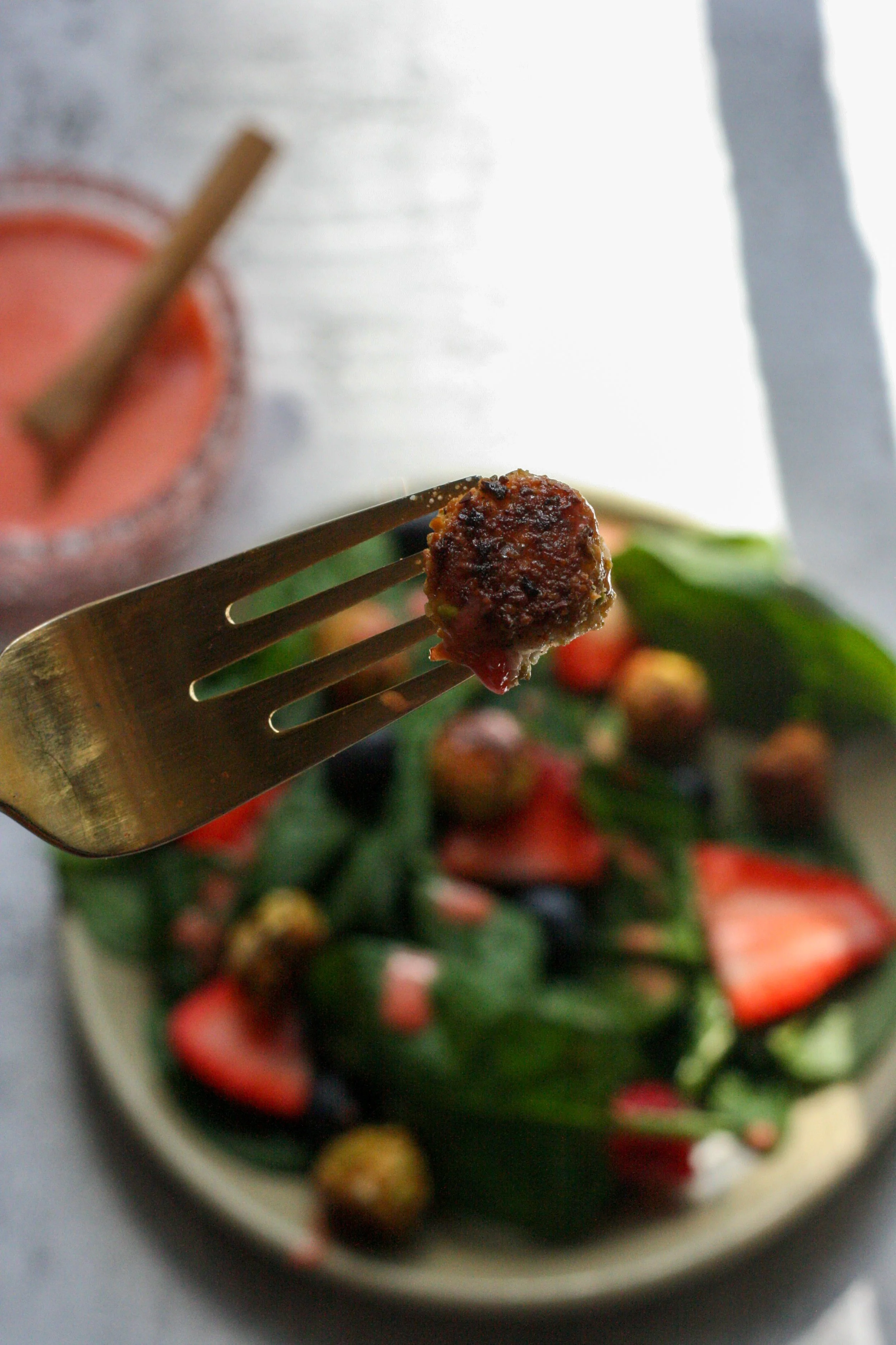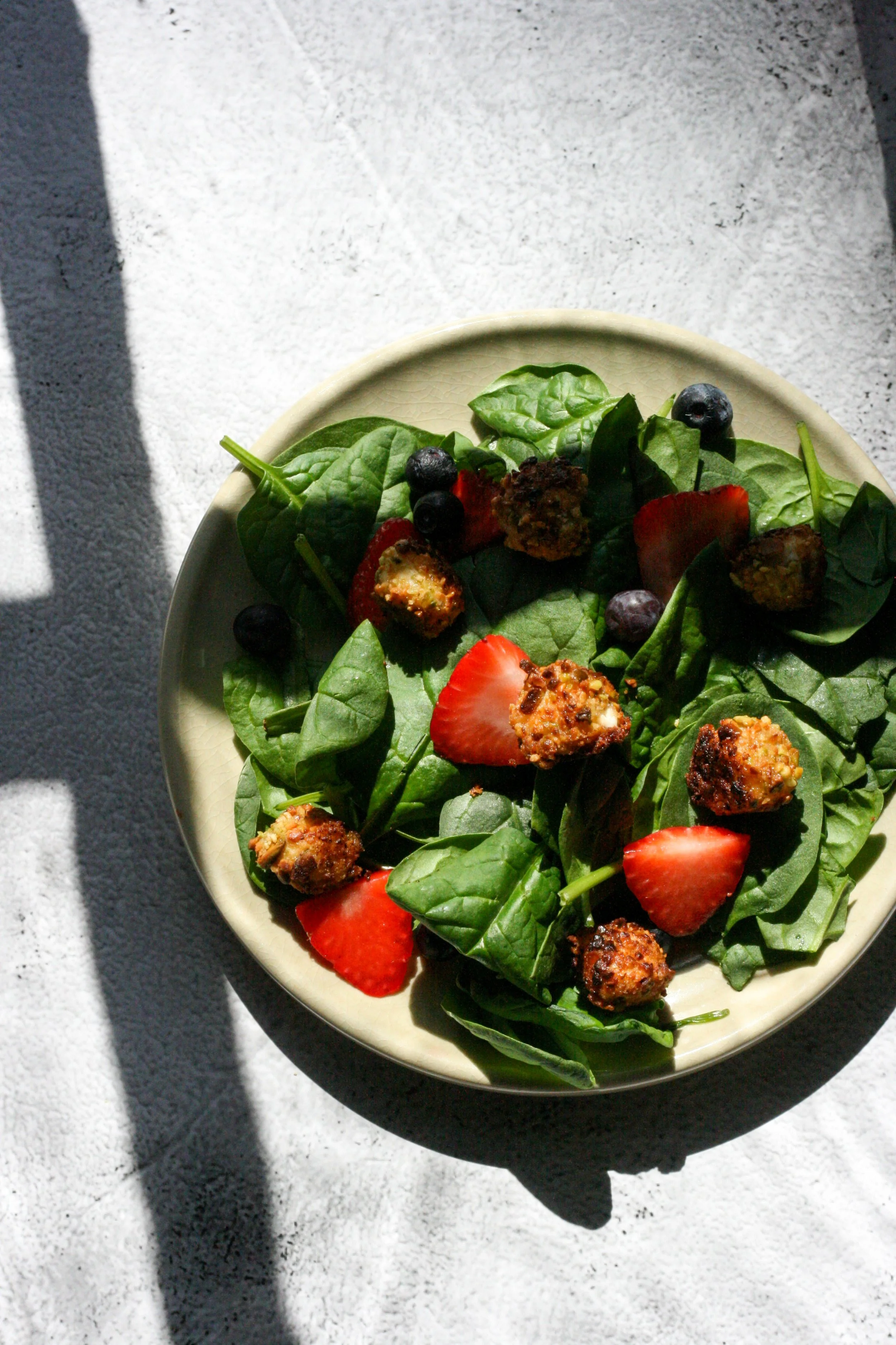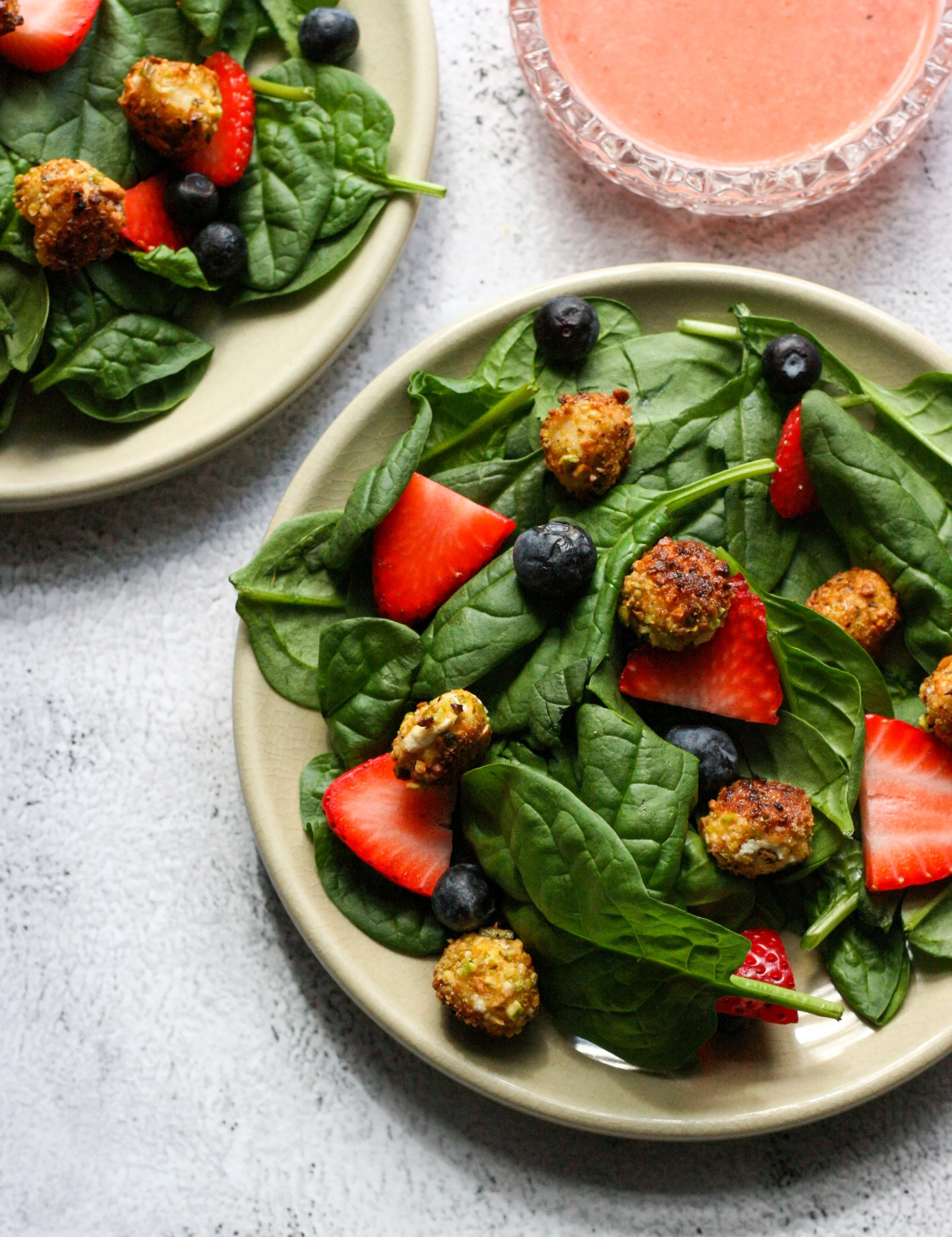 Berry Salad with Pistachio Crusted Fried Goat Cheese Balls